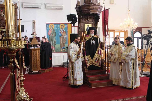 συμμετοχή πλήθους πιστών, χοροστάτησε στον Όρθρο και προεξήρχε της θείας Λειτουργίας,
